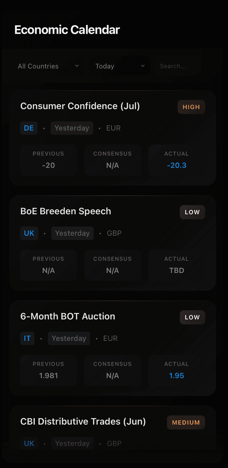 Stay informed on key economic developments shaping markets from rate decisions to macro reports and central bank speeches all assisted by market impacts, consensus views, and more.