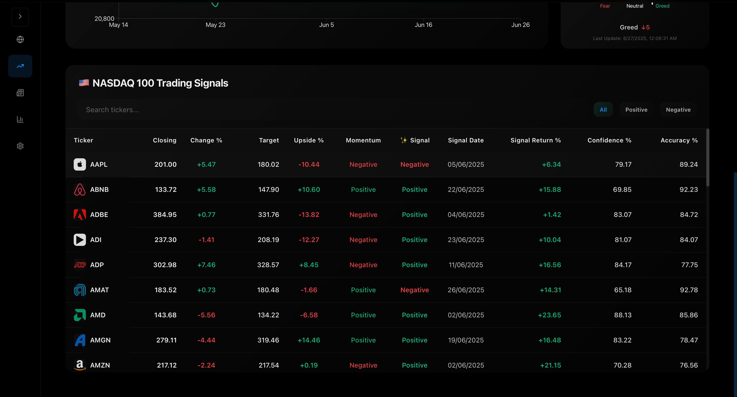Our trend signals deliver structured, data-driven insgihts with clarity and precision. Each signal includes real-time market data such as the latest price, upside potential, and target price forecast, along with model-driven momentum analysis, signal direction, signal return, and historical accuracy — thereby helping investors make informed decisions with conviction, not emotion.