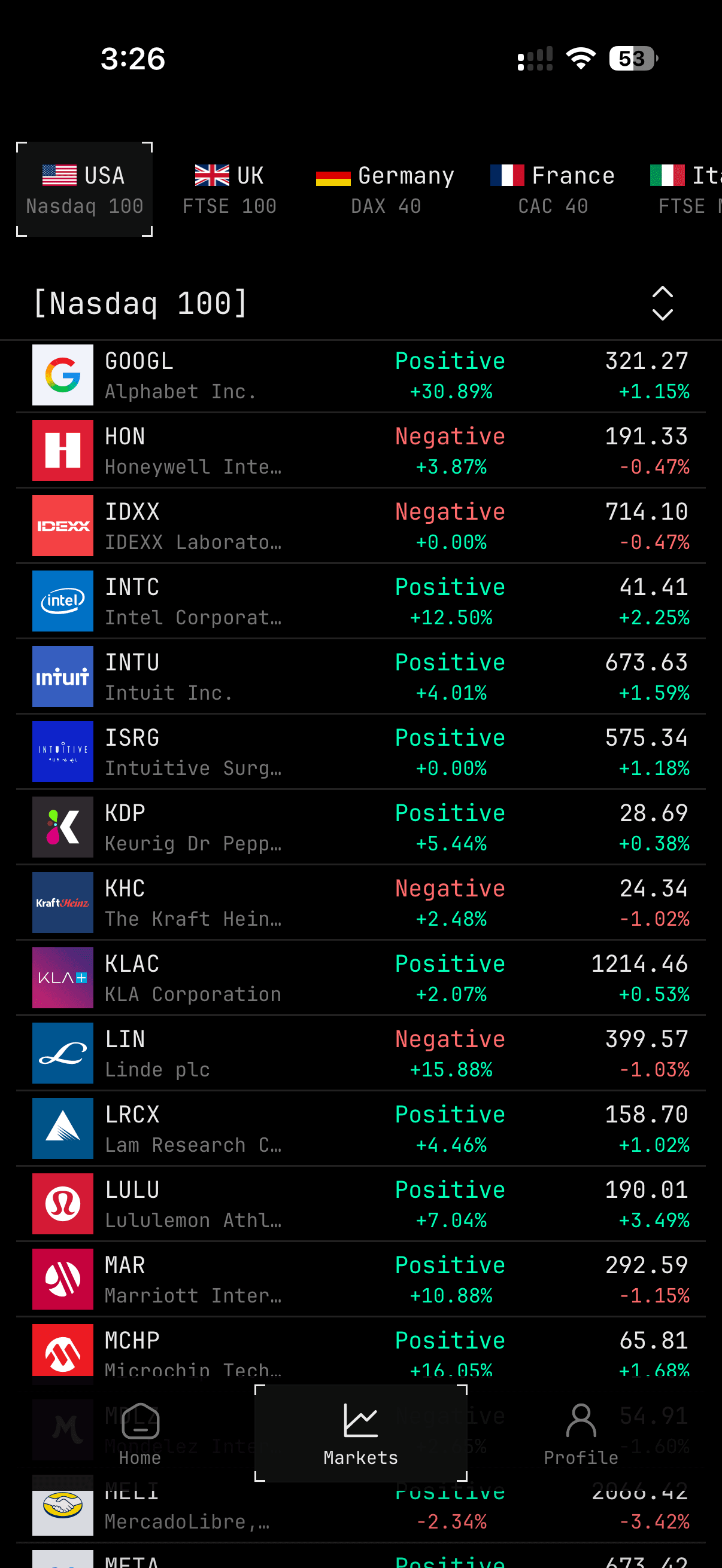 Monitor markets globally and objectively with sleek, real-time charts to easily analyse short-term fluctuations with long term momentum and toggle between multiple markets in one