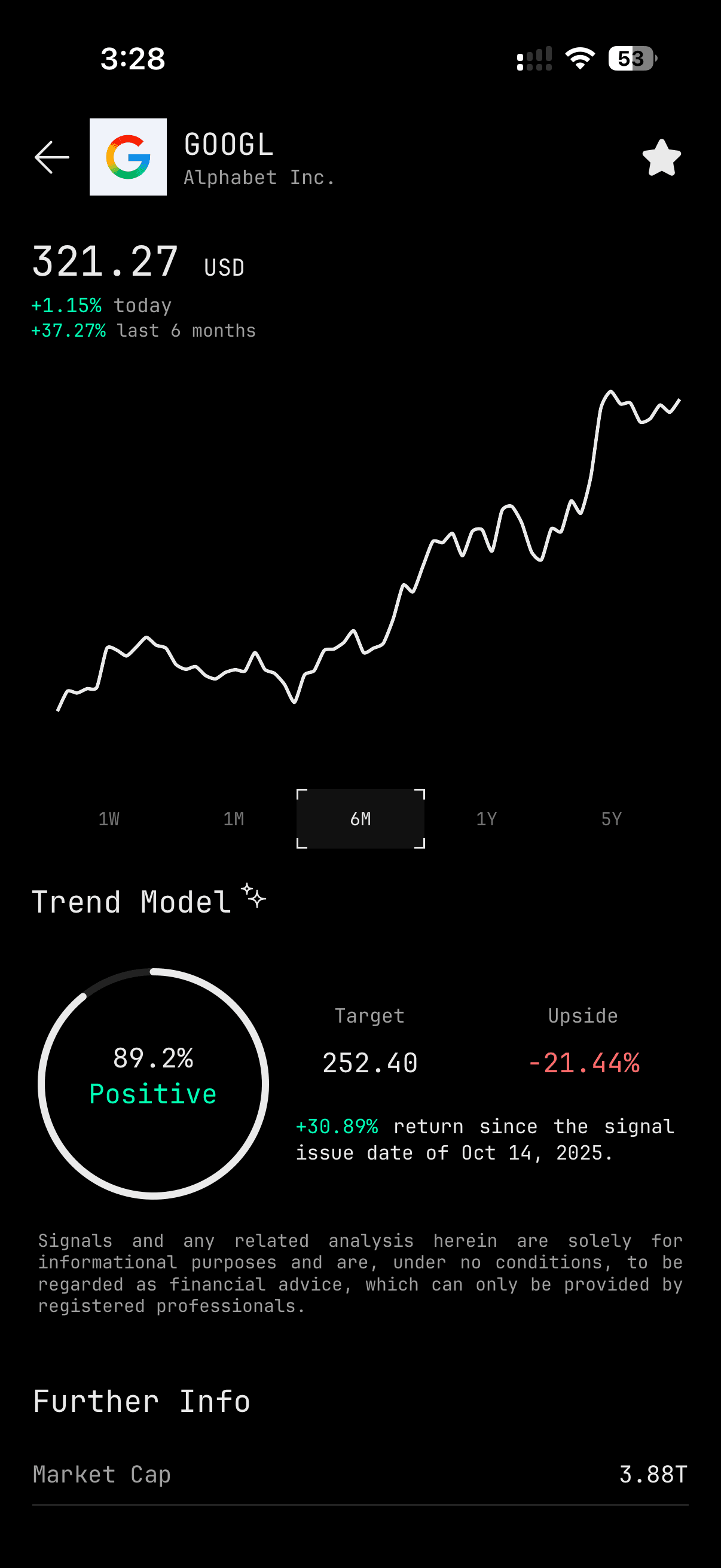 Stay ahead of the curve with AI trend signals from state-of-the-art quantitative models forecasting trend and momentum, upside potential, and confidence thereof, thus helping investors make informed decisions with clarity and speed that markets call for.
